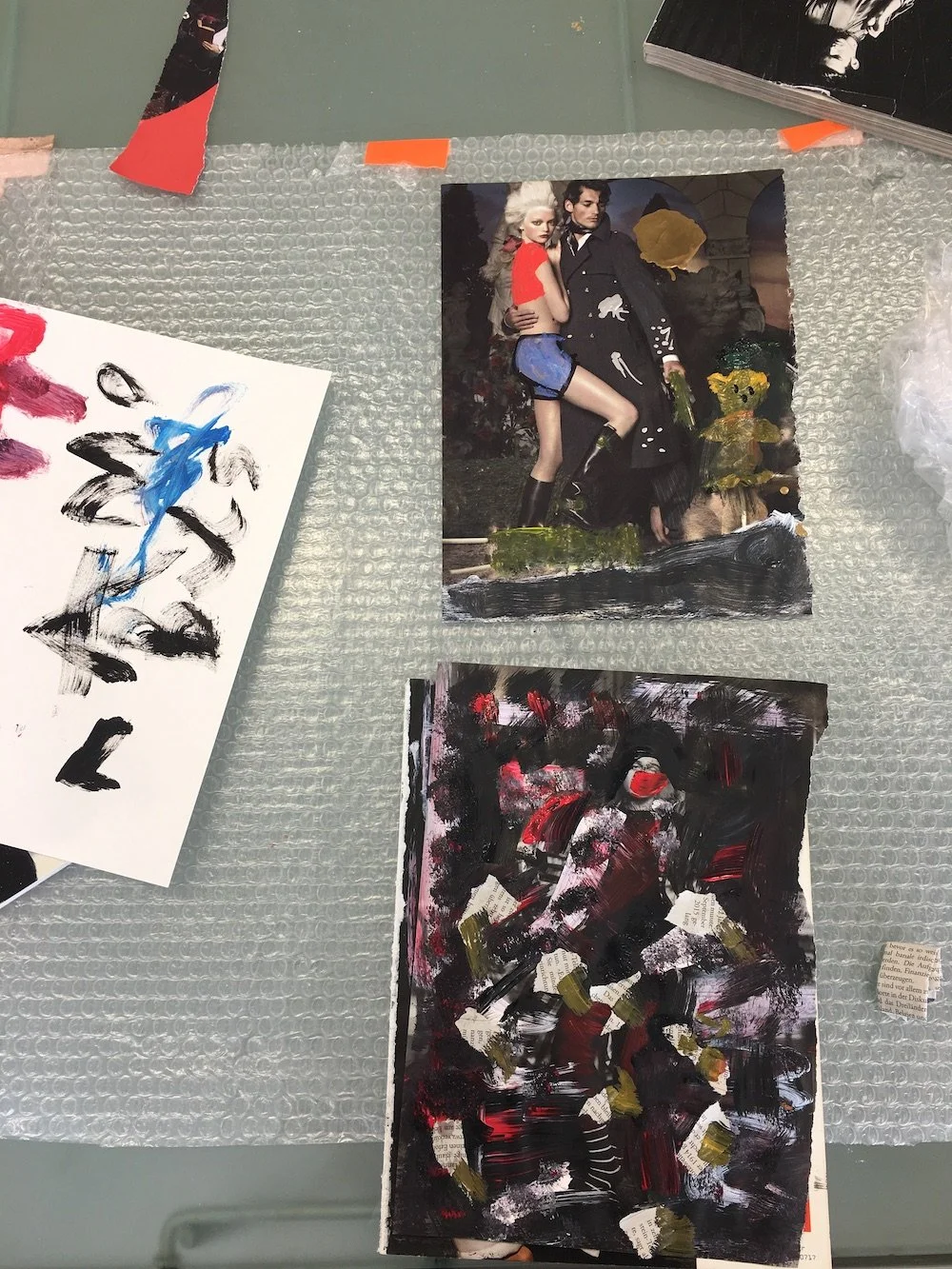 Erik also often works with images from others: With photos of Berlin or Tokyo, but also with the cover images of magazines, and he uses all kinds of materials – crayons, oil paint, ballpoint pen – to rework these images. Sometimes his careful overpaintings seem like a commentary on the original painting. Sometimes the result is a kind of mirror image of the original, sometimes something entirely new, under which the original photograph is barely recognizable.